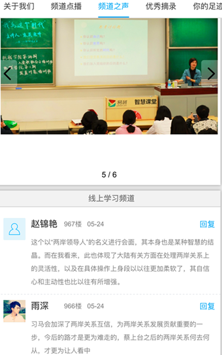 活动开展以来,机械学院党校每周在频道上发布讨论话题,在三个月内,共累计发布话题13组,参与回帖达到近1000余条,整理成文10万余字,并且在广大入党积极分子与发展对象中间形成了良好的学习交流氛围。学员们以小组为单位,每周由一个小组负责该周话题的发布与带头发言,极大提高了广大学员的参与度。同时,在线上学习频道内,学员们还可以通过“优秀摘录”、“我的足迹”等子频道浏览同期优秀观点,查看自己的留言情况。