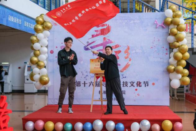 开幕式上通过震撼的视频回顾了历届科技文化节精彩瞬间,随后教务处副处长陆嵘致开幕词,表达了对“寻彩”科技文化节的祝贺与期望。伴随着热烈的掌声和欢呼声,机械学院院长单鸿波为机械学院科技类社团联盟揭牌并授旗,同时隆重宣布机械学院第十六届“寻彩”科技文化节开幕。
