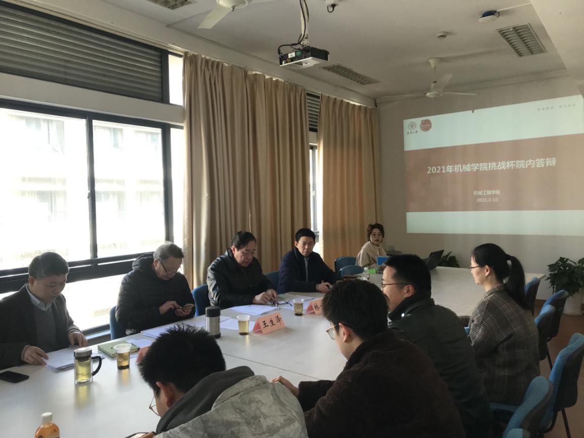 3月10号上午,机械学院2021年挑战杯院内答辩会在四号学院楼4042会议室举行,出席本次答辩评审专家有上海交通工程研究院总工程师林一平教授, 机械学院院长单鸿波教授,纺织装备教育部工程研究中心主任王生泽教授、副院长周其洪教授。出席本次答辩会的还有机械学院永利集团办公室主任安晴晴以及26支项目团队的答辩人、答辩会由机械学院团委书记宋文博主持。
