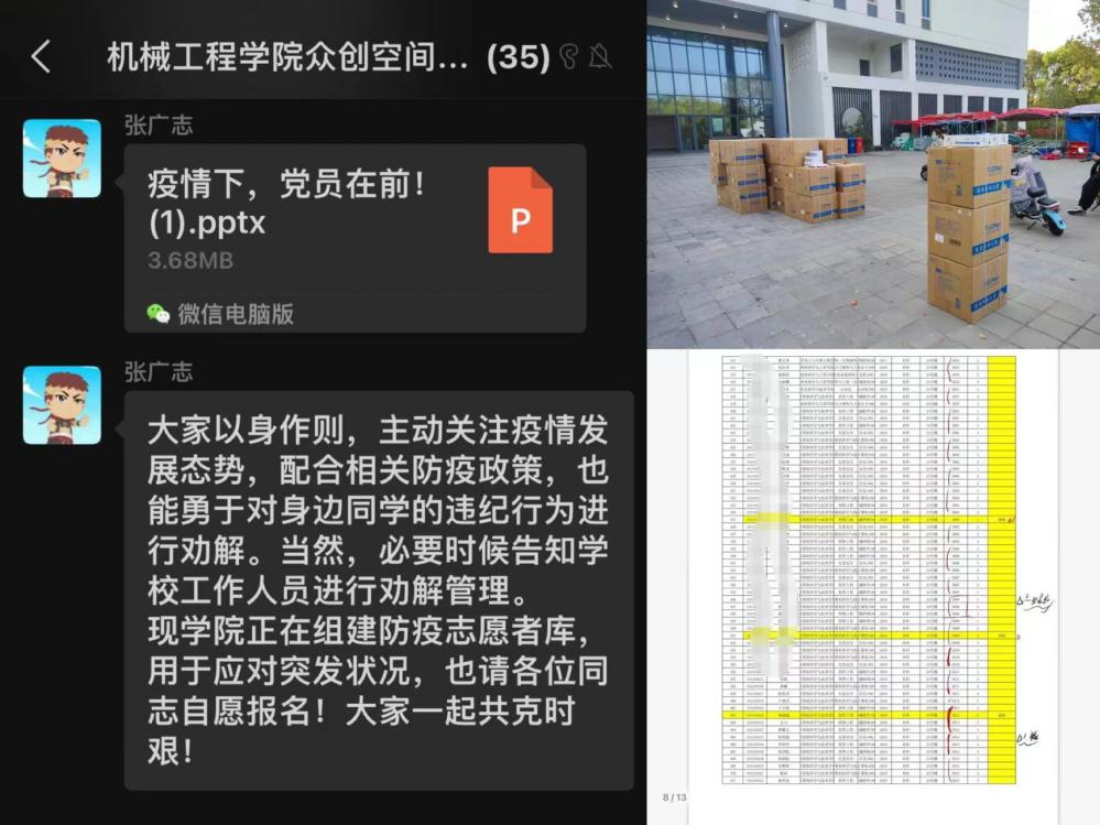 “一个支部就是一个堡垒,一个小组就是一片阵地,一名党员就是一面旗帜。”面对严峻的疫情,支部党员不畏艰辛、冲锋在前、勇担重任、扎实工作,对照学院党委《yl6809永利YL集团疫情防控常态化工作预案》,带头推动落实各项工作,彰显了当代青年党员的使命担当和卓越风采。众创空间为本硕博一体化党支部,支部党员纵跨多个学段,为提升工作效率,支部迅速组织各年级党员成立党员志愿先锋队,建立起宿舍楼宇党员先锋岗,各党员积极配合并分担所在年级的各项数据统计工作,高效落实相关防疫措施,确保及时准确掌握每名同学的具体情况。