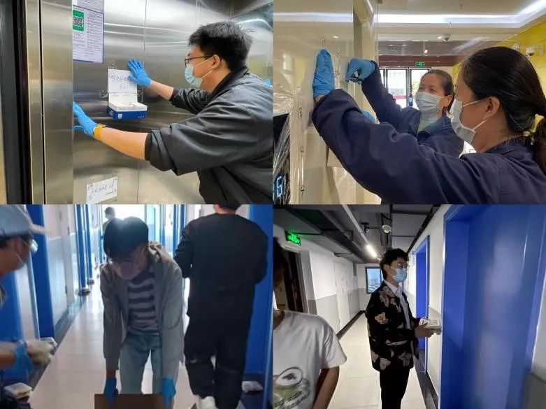 他们是家里的“勤务兵”,防控疫情首先要控制人员流动,新研B栋打造了横纵双向志愿者物资转运体系,纵向志愿者负责在大厅对接各类物资,通过两部电梯向各楼层直接发送;横向志愿者则承担本楼层的物资发放及全员核酸检测导引。纵向志愿者不上楼,横向志愿者不下楼,两批志愿者通过电梯运输体系实现零接触,切实配合学校扎紧安全“防护网”。