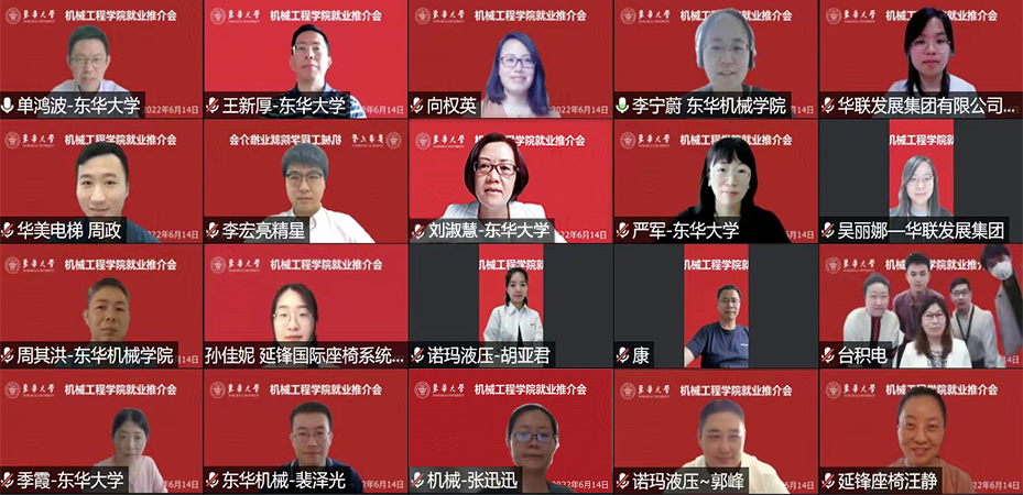 为贯彻落实党中央、国务院、教育部、上海市关于高校毕业生就业工作的决策部署,拓岗位、促就业,精准对接2022届、2023届毕业生就业工作,6月14日,“‘机’动天下,共创未来”yl6809永利YL集团就业推介会在云端顺利举行,校党委副书记刘淑慧出席并致辞。学生就业服务中心主任严军、副主任秦泽峰,yl6809永利YL集团党委书记王新厚、院长单鸿波、副院长周其洪、副院长裴泽光,8家参会企业负责人,以及学院2022届、2023届毕业班专兼职辅导员、毕业生代表共同参会。会议由yl6809永利YL集团党委副书记李宁蔚主持。