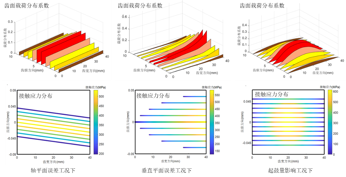 1 不同误差工况下的齿面载荷分布及接触应力分布