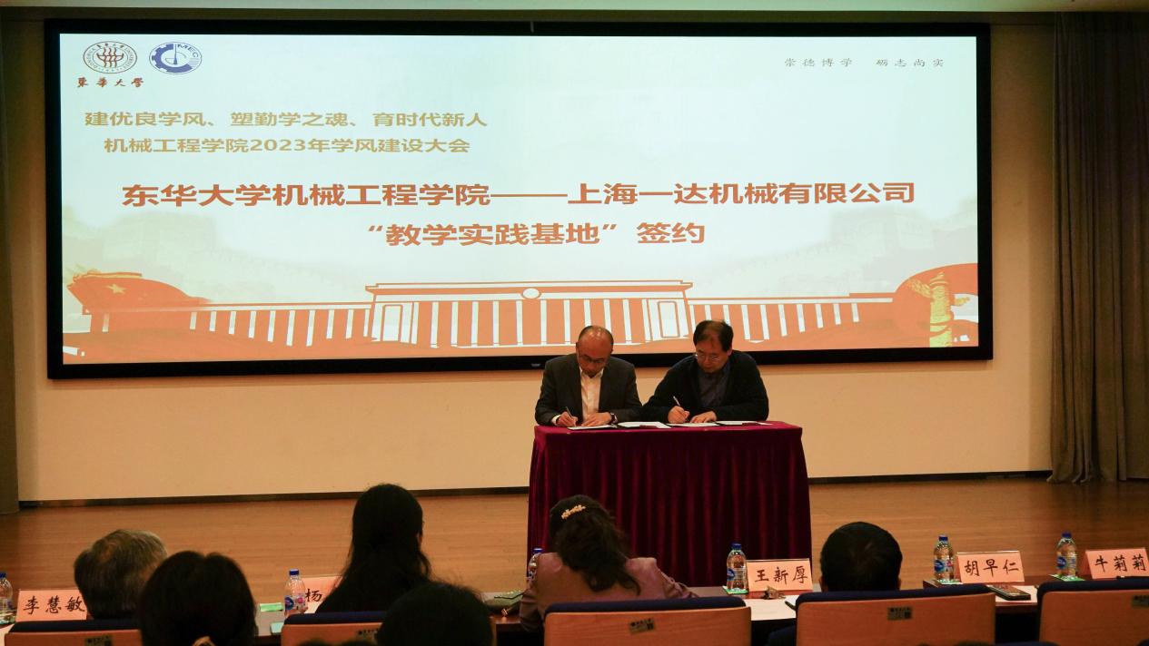 众创空间学风涵养工作室”在会上揭牌,工作室着重弘扬科学家精神、涵养优良学风,支持学生开展各种研究创作活动。同时,yl6809永利YL集团与上海一达机械有限公司签订“教学实践基地”合作协议,通过校企密切合作,进一步提升学院学术与就业的核心竞争力。