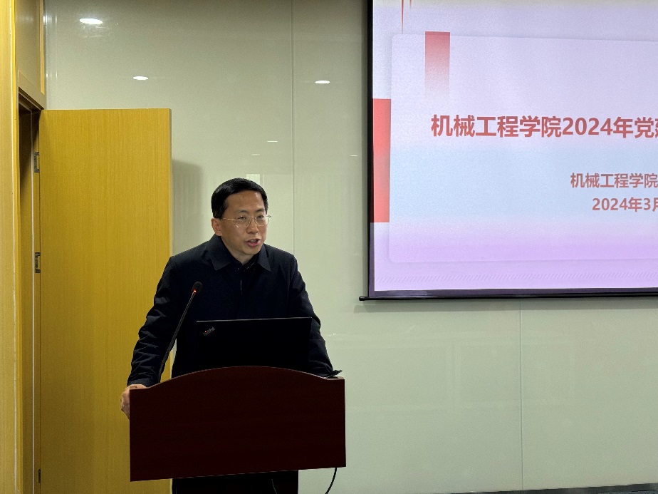 院长单鸿波指出,学院全体教职工要深入学习宣传贯彻党的二十大精神和学校第十一次党代会精神,强化思想政治引领,坚持教育强国、科技强国、人才强国的国家发展战略,把党的二十大报告精神转化为指导学院内涵式发展的行动纲领,推动学院实现高质量发展。单鸿波结合学校2024年工作要点,围绕学院2024年重点工作,分别从学院本科教育教学审核评估工作、专业学位研究生教育综合改革、高质量人才队伍培育与建设、依托特色优势学科和行业产业背景做强科研工作、学院内外部资源配置、高质量学生就业与创业工作、学院文化氛围及公益服务积分计划等方面做了详细介绍,强调以人才为基础、以创新为核心,进一步优化师资及研究队伍布局,充分发挥机械工程学科综合优势,做好国家级人才培养和科技创新基地建设,持续推动一流专业建设和创新人才培养,并号召大家以大学使命和国家战略为引导,努力构建全员育人的格局,共同营造富有人文特色、积极向上、充满阳光的学院文化,不断为学院高质量发展注入新动能、塑造新优势。