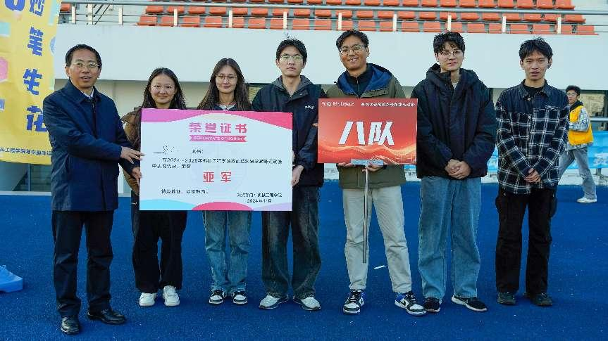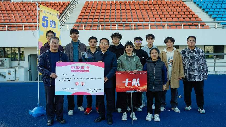 赛事结束后,进行了赛后拉伸,为运动员们提供了放松和恢复的时间。随后,颁奖环节在热烈的掌声中进行,王新厚为获奖团队颁奖,并高度评价了参赛师生的积极参与和出色表现,强调了团队精神和导学情谊的珍贵。