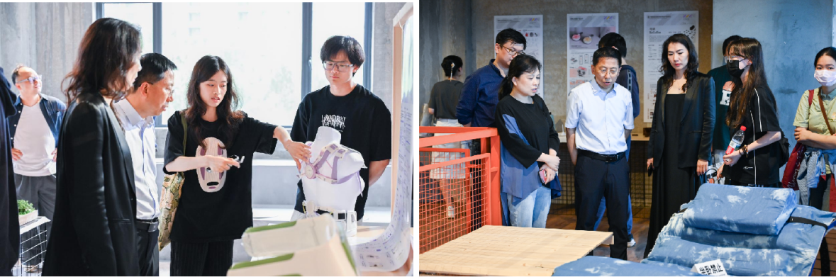 工业设计系副主任姚子颖介绍了本次毕业设计作品展的筹备情况。近50位优秀毕业生经过近半年的努力完成的设计作品包含了交通工具、医疗健康、生活家居、未来探索等多领域多元化的设计主题,充分体现东华学子感知与绽放时代光芒、探索与开拓未来可能的精神面貌。
