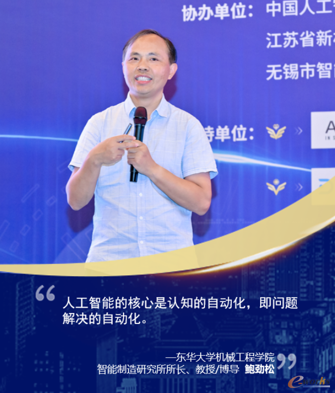 2025 年 8 月 15 日,“2025 中国工业 AI 发展与应用论坛” 在南京成功举办。本次论坛由 e-works 数字化企业网、南京制信制造技术有限公司联合主办,中国人工智能学会智能制造专业委员会、南京机械工程学会等单位协办,以“AI 驱动工业变革,重塑制造新未来”为主题,共同探讨工业人工智能的发展与应用实践。我院鲍劲松教授受邀出席论坛,并发表主题演讲。