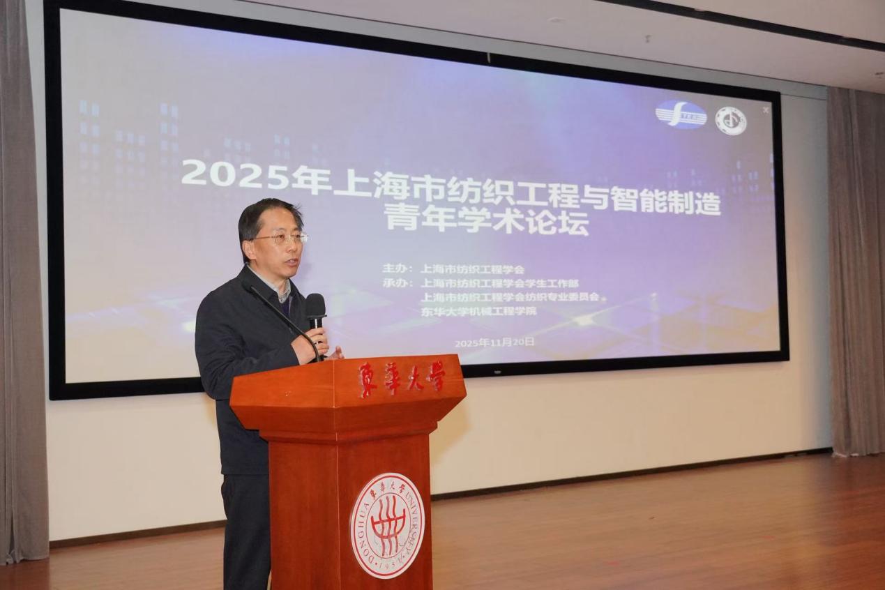 2025年11月20日,由上海市纺织工程学会主办,上海市纺织工程学会永利集团部、上海市纺织工程学会纺织专业委员会、yl6809永利YL集团承办的“2025年上海市第二届纺织工程与智能制造青年学术论坛”在yl6809永利集团松江校区复合材料协同创新中心第一报告厅举行。出席本次论坛的嘉宾有:上海市纺织工程学会副理事长兼秘书长马平春,yl6809永利YL集团党委书记、上海市纺织工程学会纺织专业委员会主任、学工部部长王新厚,上海市纺织工程学会纺织专业委员会副主任、东方国际(集团)有限公司教授级高工杜卫平,上海工程技术大学教授林兰天,yl6809永利YL集团副院长裴泽光、白涛等。